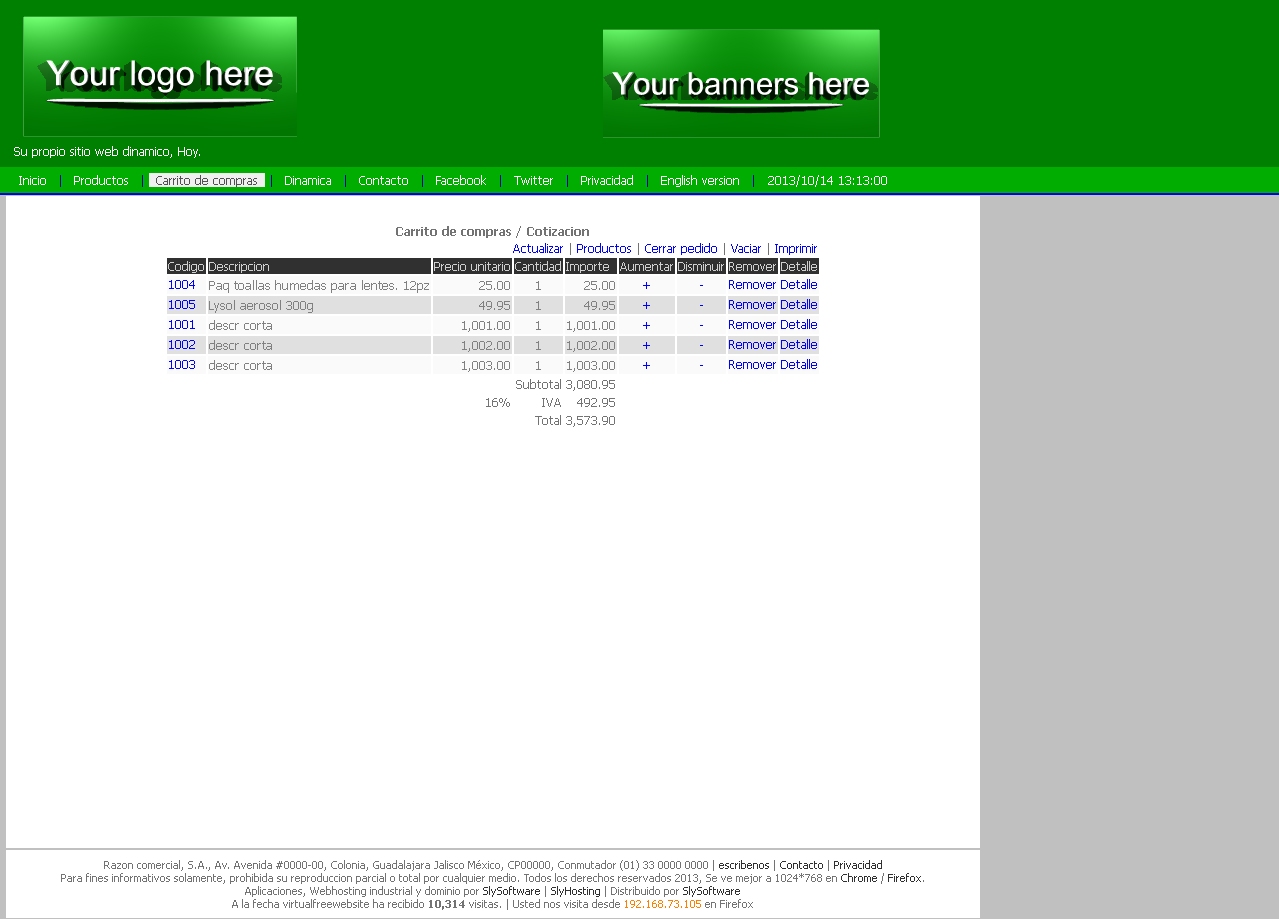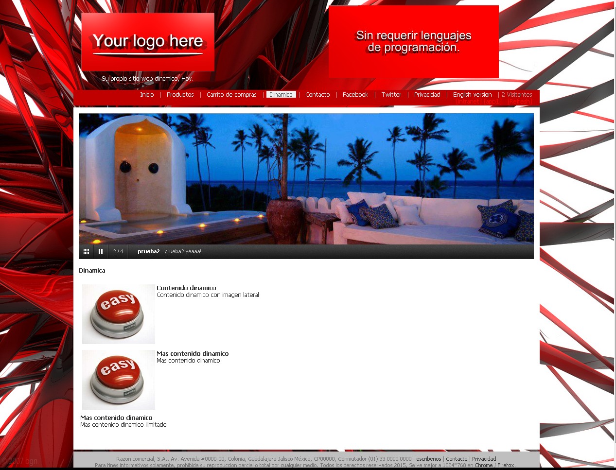 Recuerde, estos solo son ejemplos de distribucion, usted puede cambiar colores, logos, banners, contenido, fondos, sin limite.